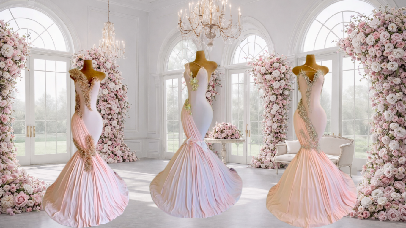 Made from the finest materials, our bespoke, handcrafted dresses. Debrena designs all the dresses in studio in the United States. She chooses every bead, every rhinestone and curates every piece of fabric. We’ve adapted a sustainable technique of using 100% of the materials we purchase once the fabric is cut. We utilize every part of our fabrics using smaller pieces to create flounces, handmade flowers and embellishments of all kinds. All dresses are hand beaded or have handmade flowers. We take pride in making our bride feel as if she’s the most beautiful woman in the room. Selecting the best fabrics that will suit her skin tone, by adding the right amount of lace or beading to create an hour glass silhouette. This is luxury, this is Aurora Goldiv.