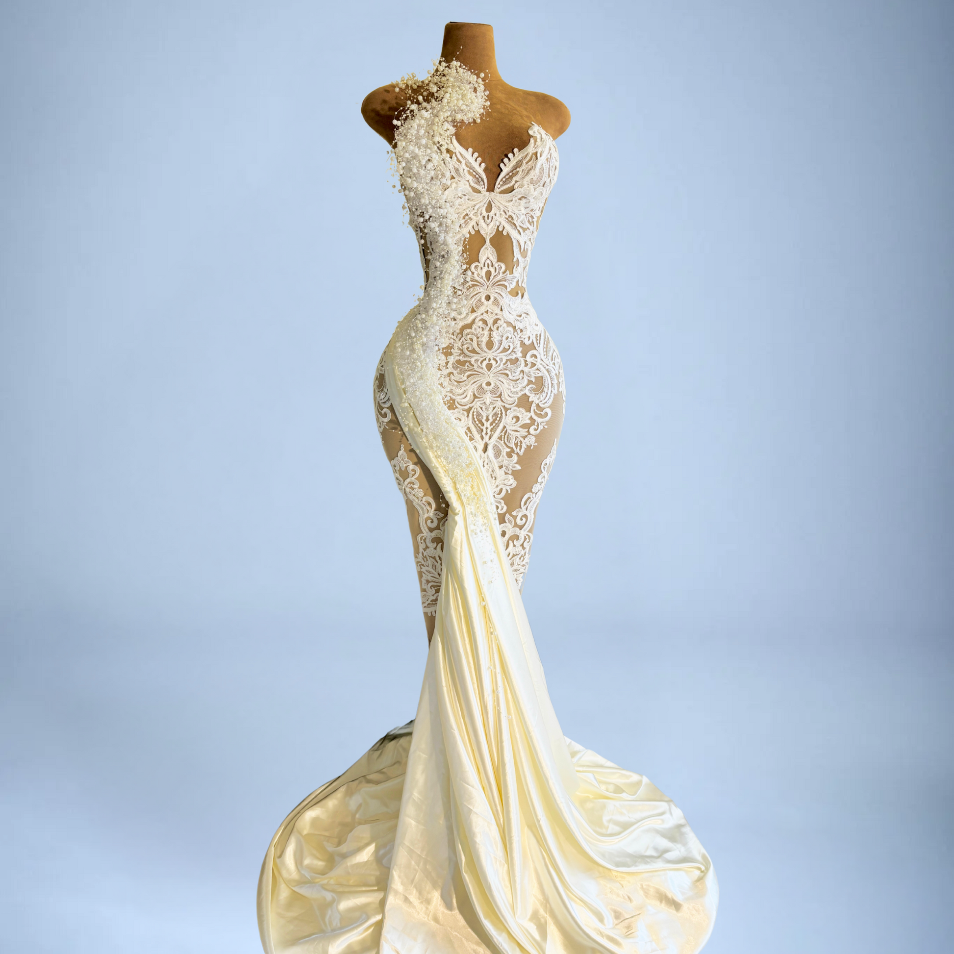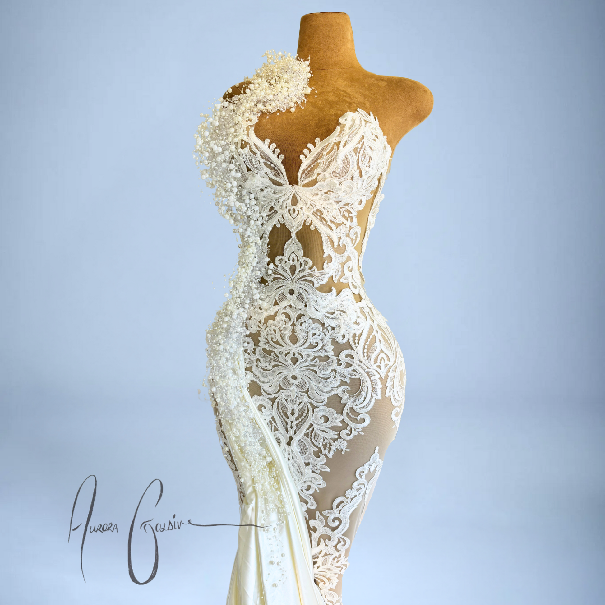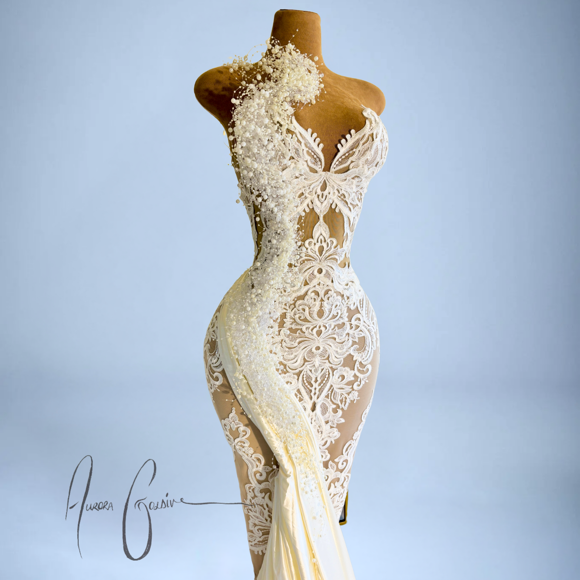 Materials: Satin, Lace, Pearls, Beads 3D Design, Skin Tone Mesh