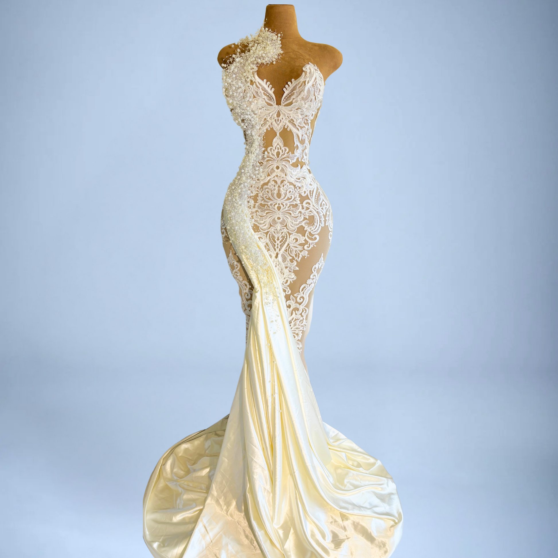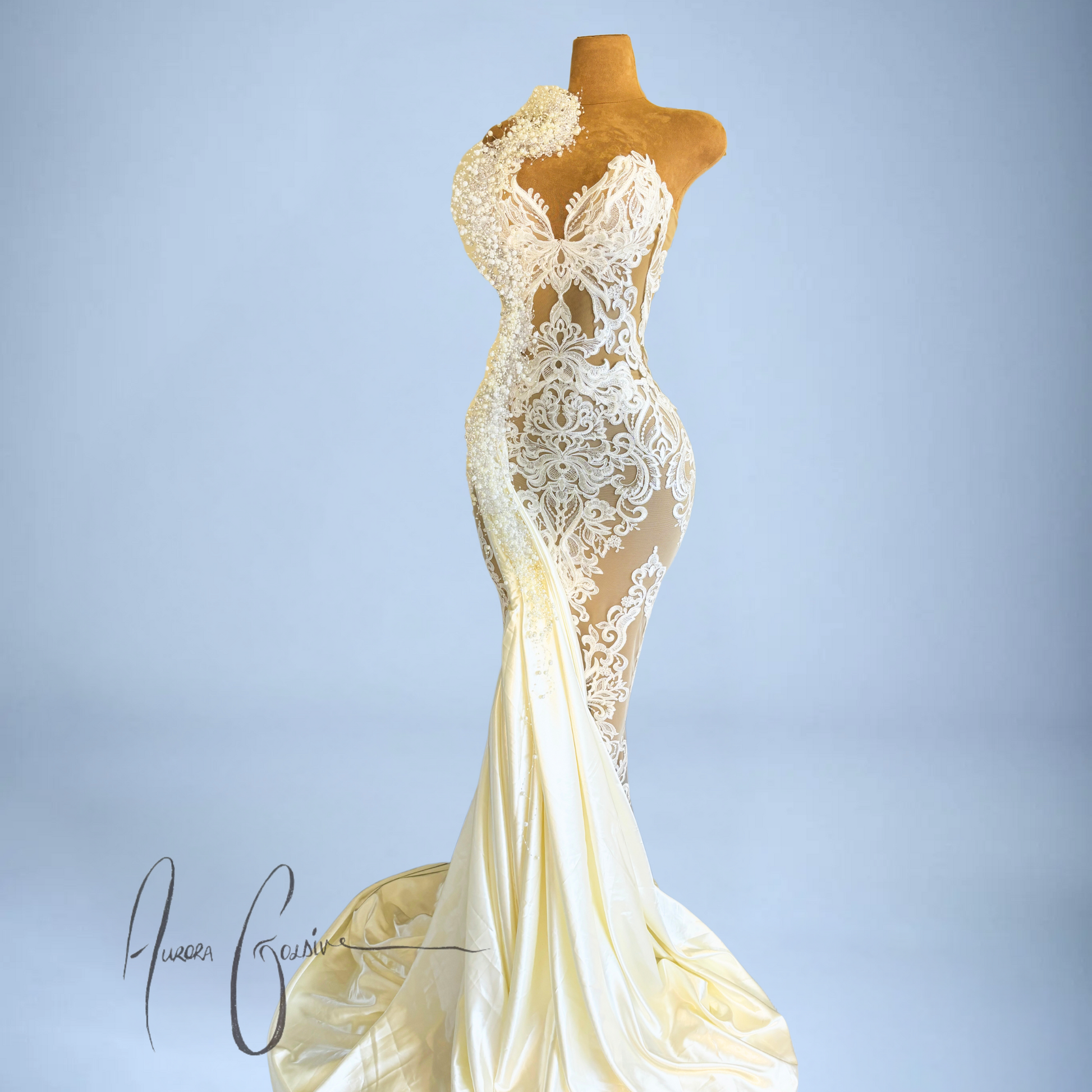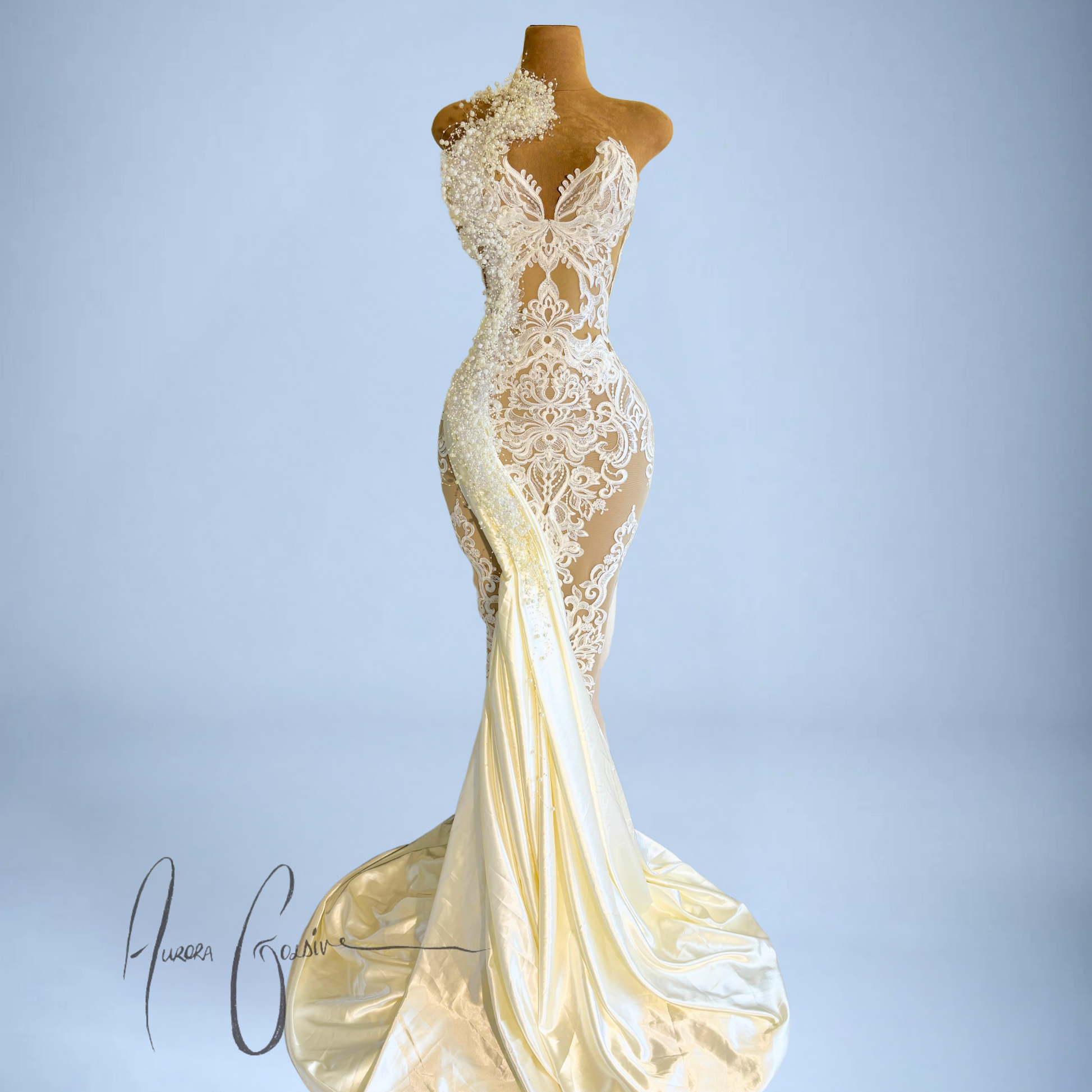 Materials: Satin, Lace, Pearls, Beads 3D Design, Skin Tone Mesh