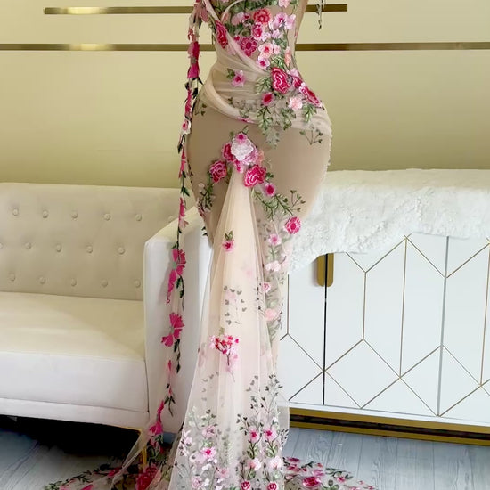 Orvillia Embroidered Floral Mermaid Gown